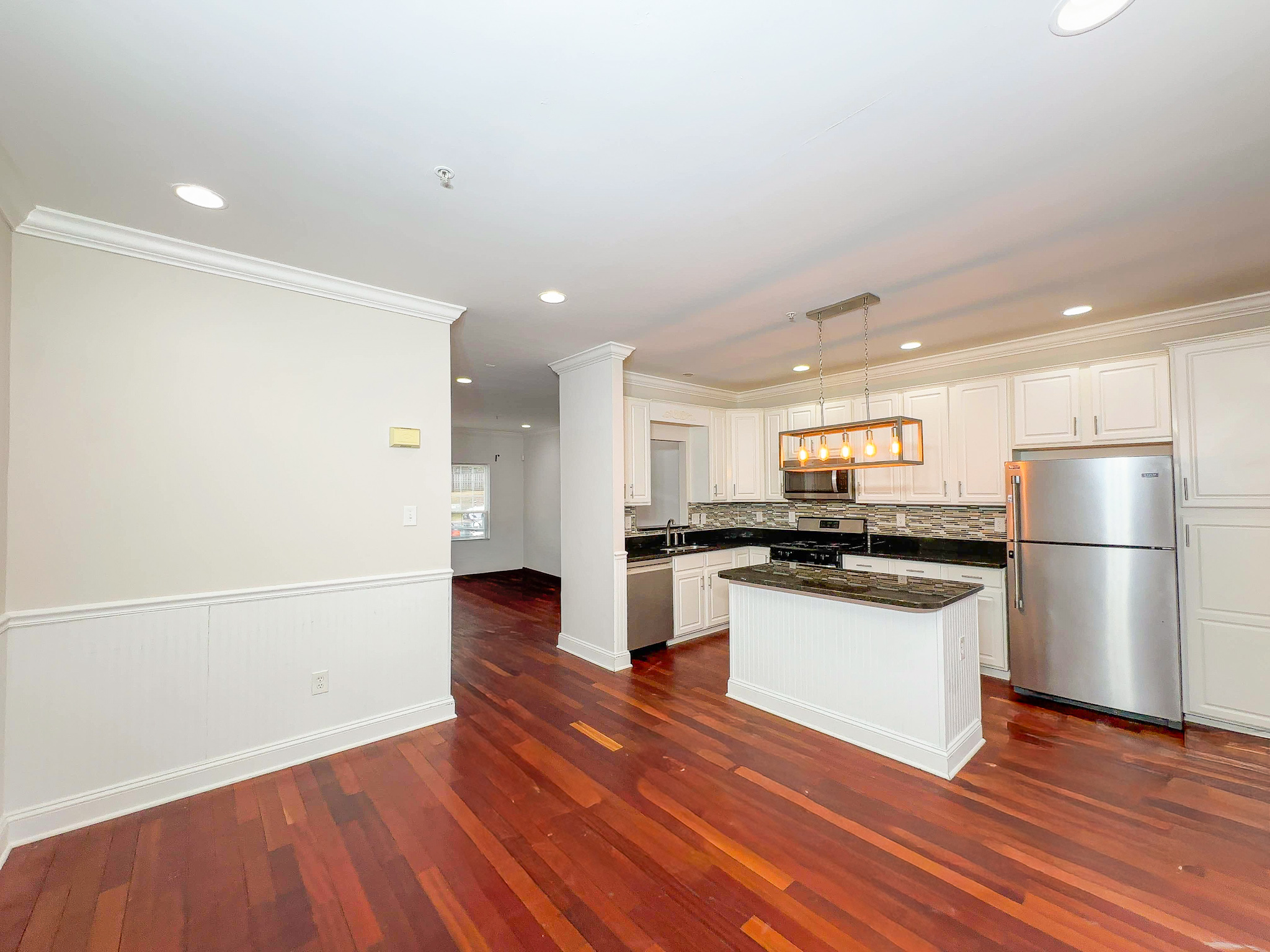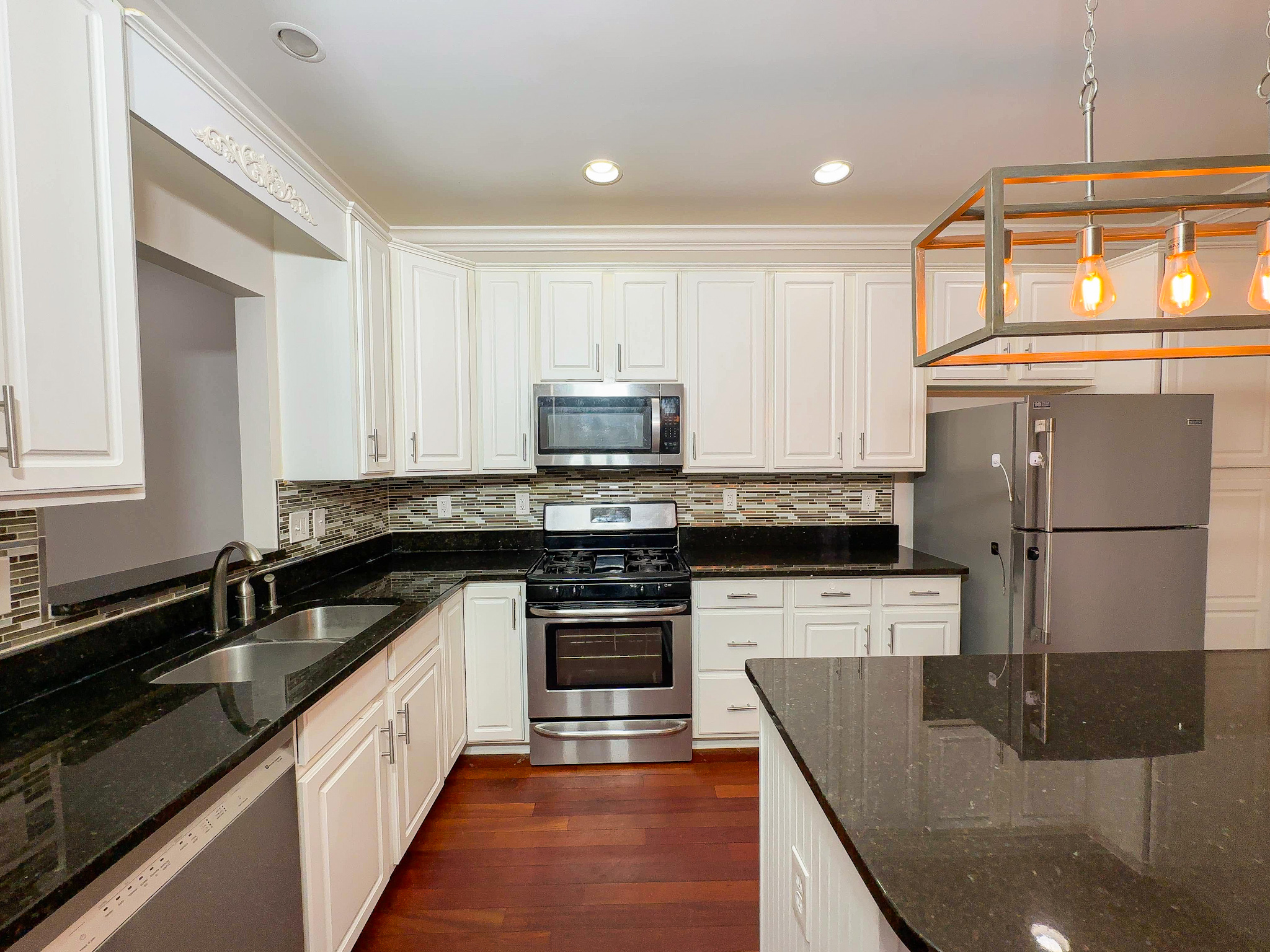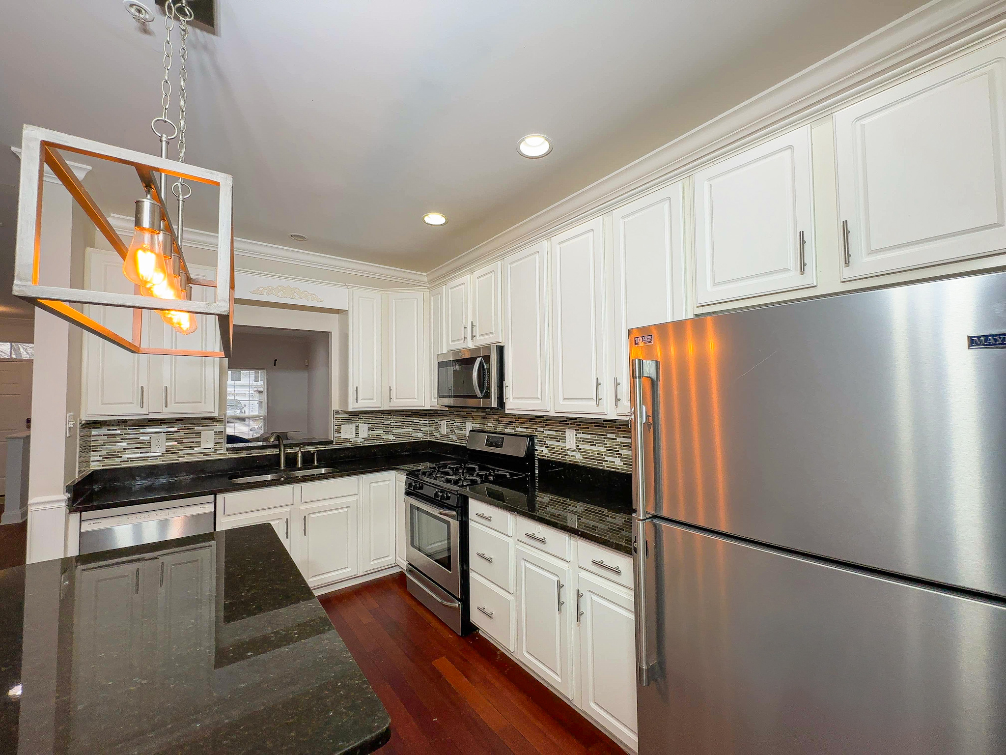 Hardwood floors. Open layout. Granite kitchen. 42” cabinets. Stainless steel appliances. Island.